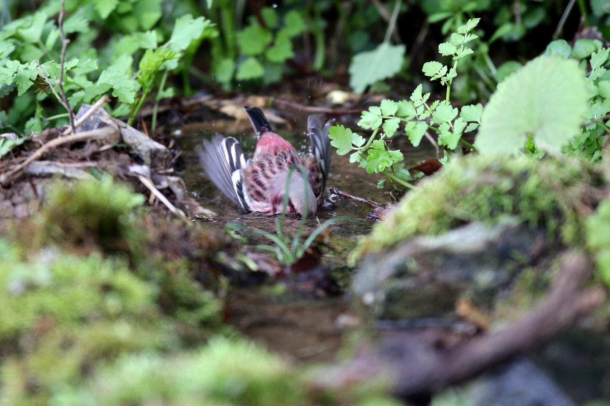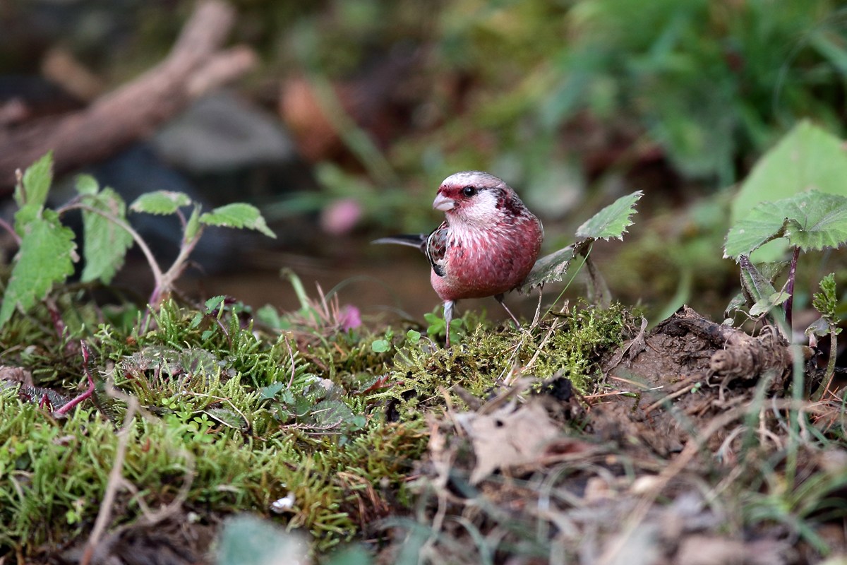 ベニマシコ ( 紅猿子 ) Uragus sibiricus Long-taild Rose Finch L=15cm W=21cm ( 名前の由来 ) " ましこ " ( 猿子 )の名は羽色が赤いからで " べに " ( 紅 )は赤より紅色に近いから 江戸時代中期には " てりましこ " こましこ " さるましこ " とも呼ばれていた