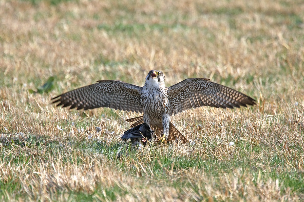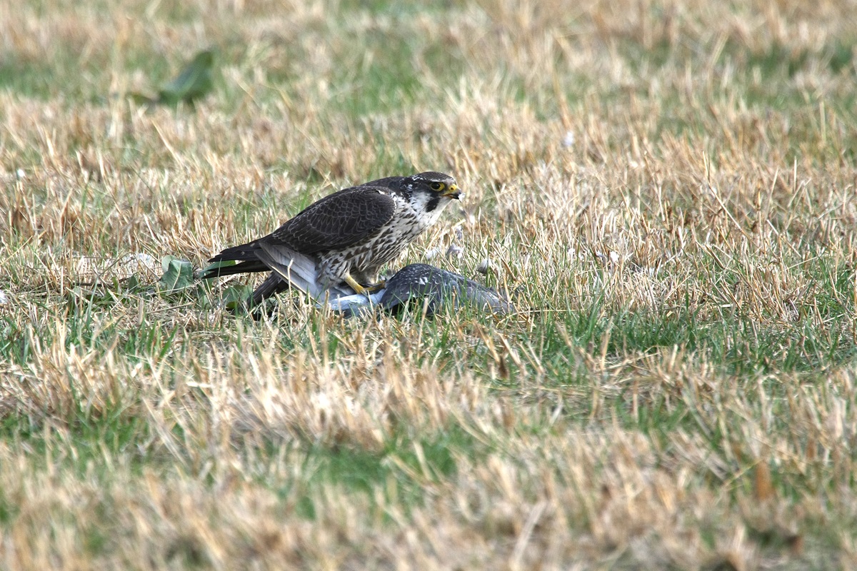 ハヤブサ ( 隼 ) Falco peregrrinus Peregrine Falcon L=♂42cm ♀49cm W=84cm〜120cm ( 名前の由来 ) 速い翼 「 ハヤツバサ 」 がなまって 「 隼 」 になった