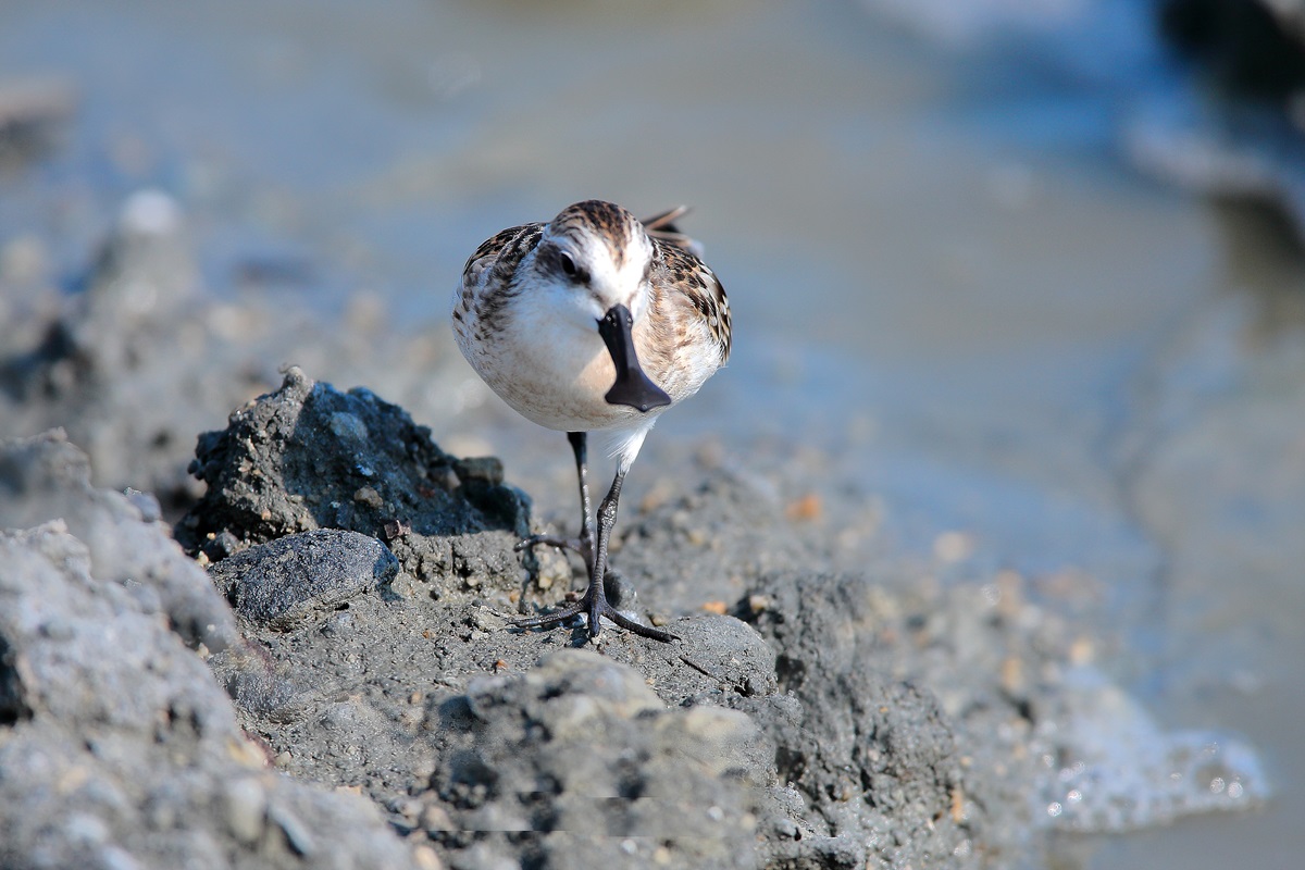 ヘラシギ ( 箆 鷸 ) Eurynorhynchus pygmeus Spoon-billed Sandpiper L=15cm ( 名前の由来 ) 嘴の形が箆(へら)のようであるため 江戸時代中期から ” へらちどり ” へらしぎ ” と呼ばれている 生息数が少なく世界的に貴重な種であり 絶滅危惧1B類 (EN)に登録されている ロシアのチュトコ半島の限られた地域で繁殖しベンガル湾沿岸にて越冬するが 日本には希な旅鳥として渡来する 。 2009-09