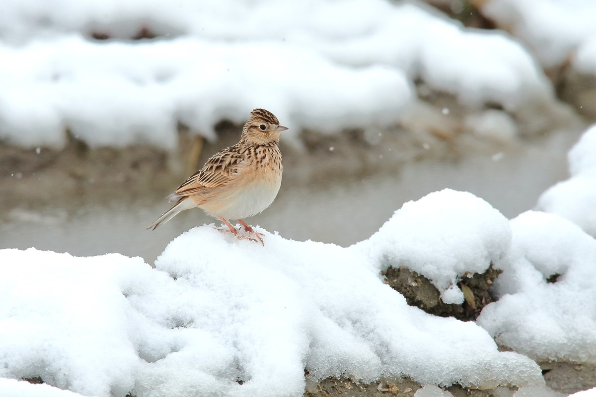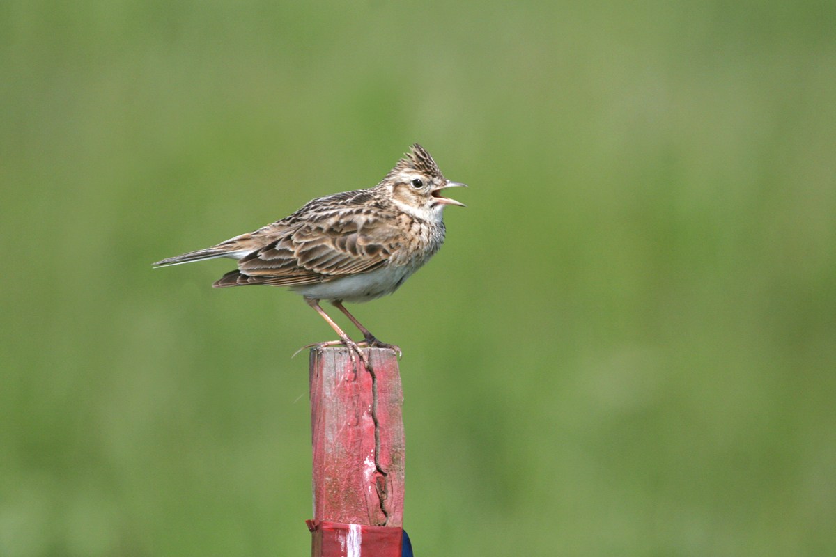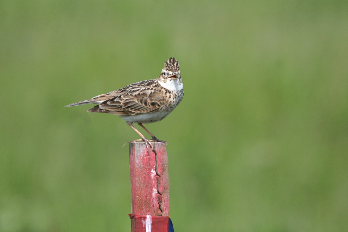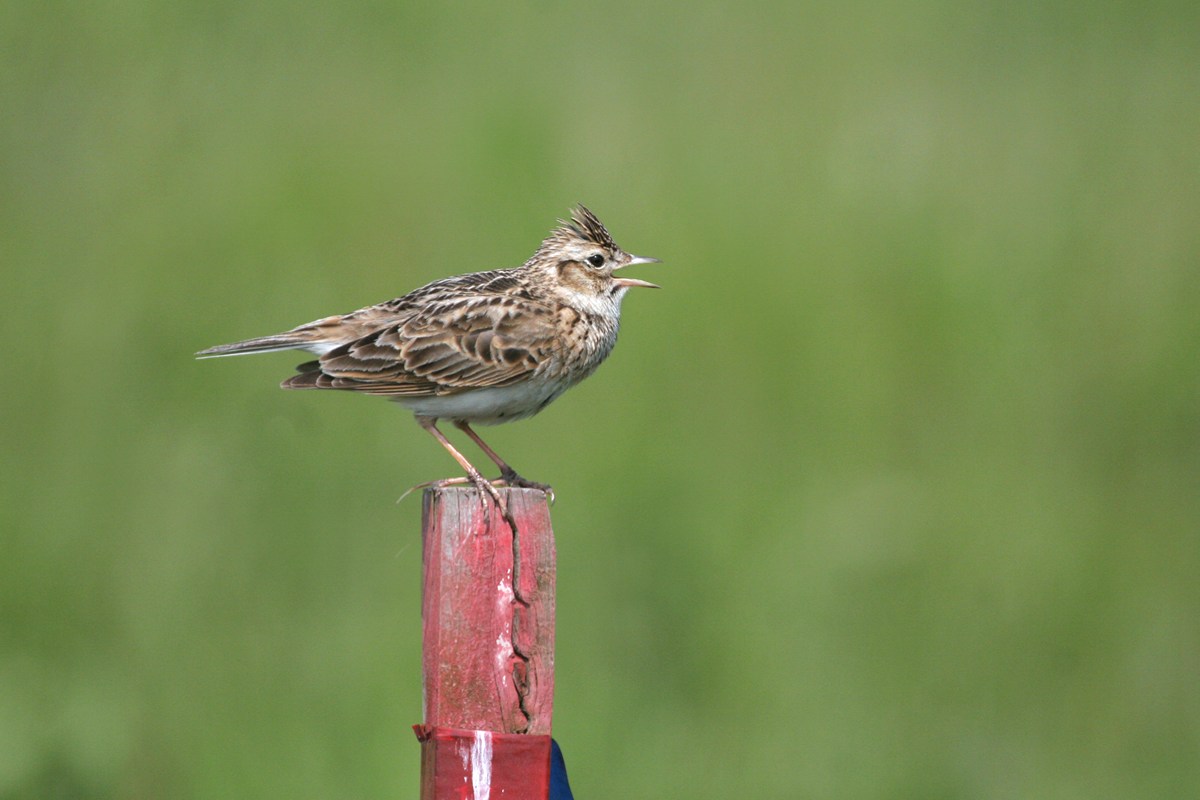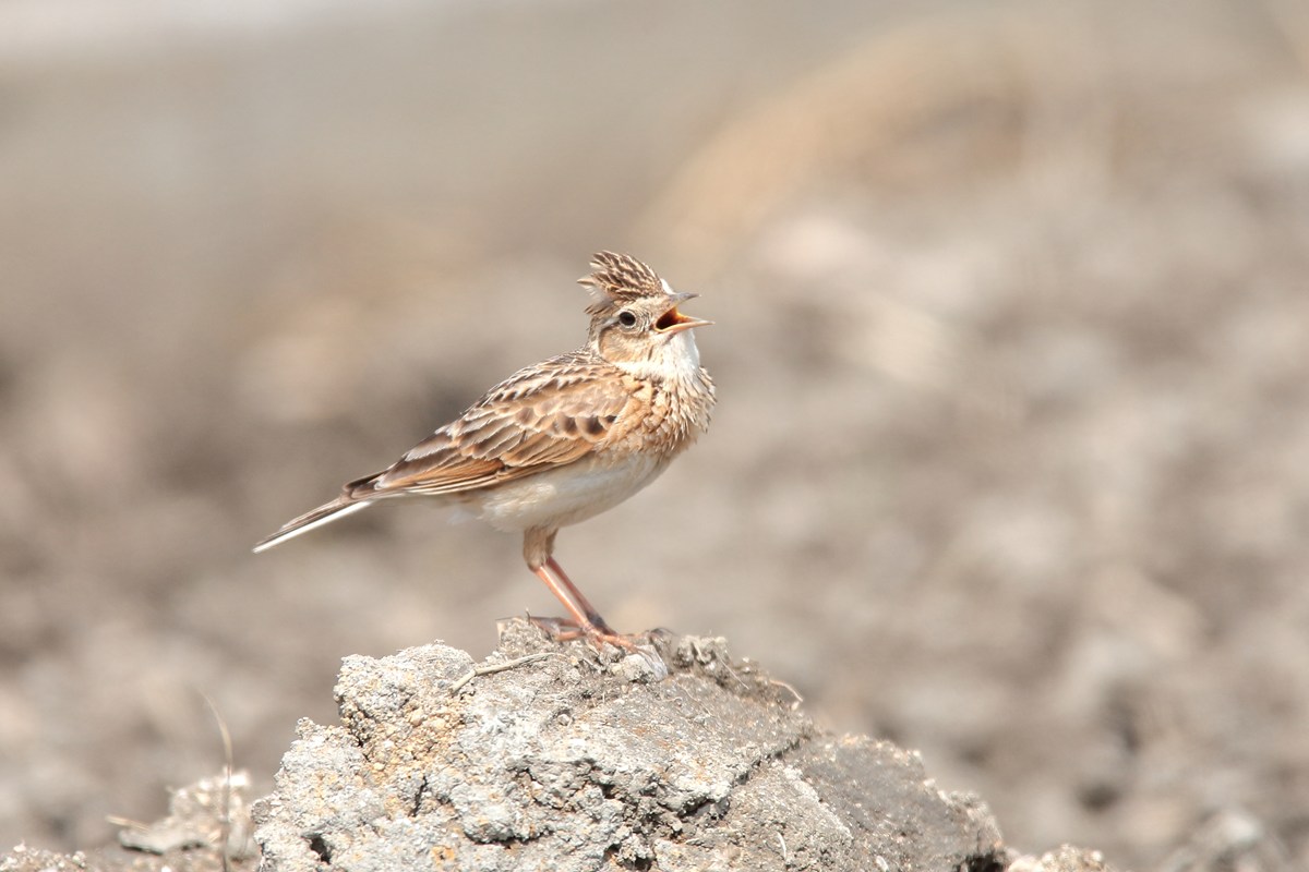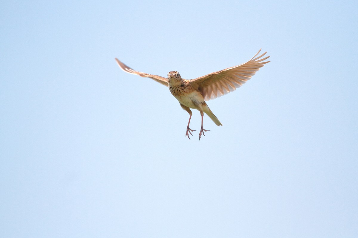 ヒバリ ( 雲 雀 ) Alauda arvensis Skylark L=17cm W=32cm ( 名前の由来 ) 貝原益軒は 「 日晴 晴れたる時 高く登りなく 」 と述べ、 日晴から " ひばり " となったようだ。