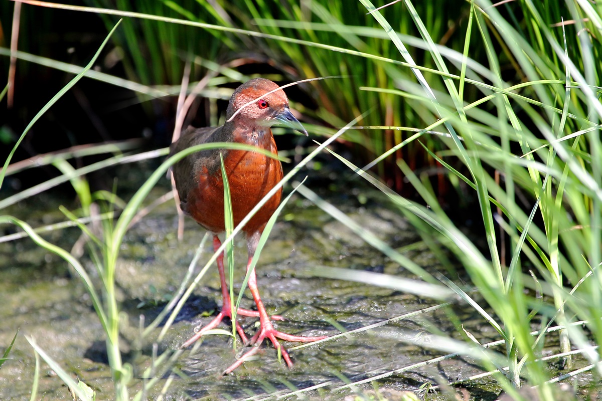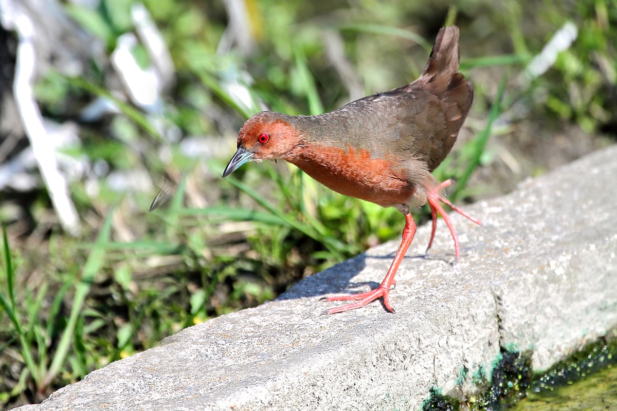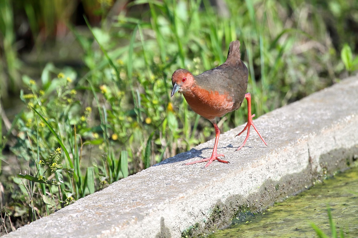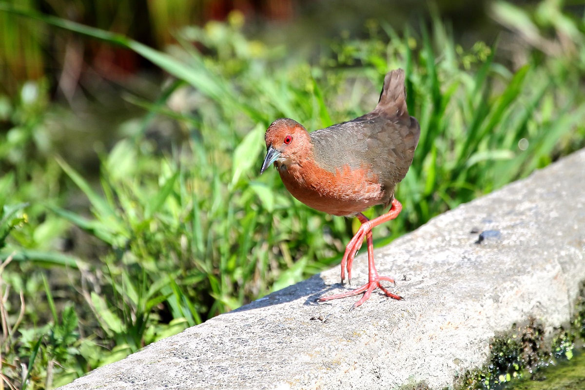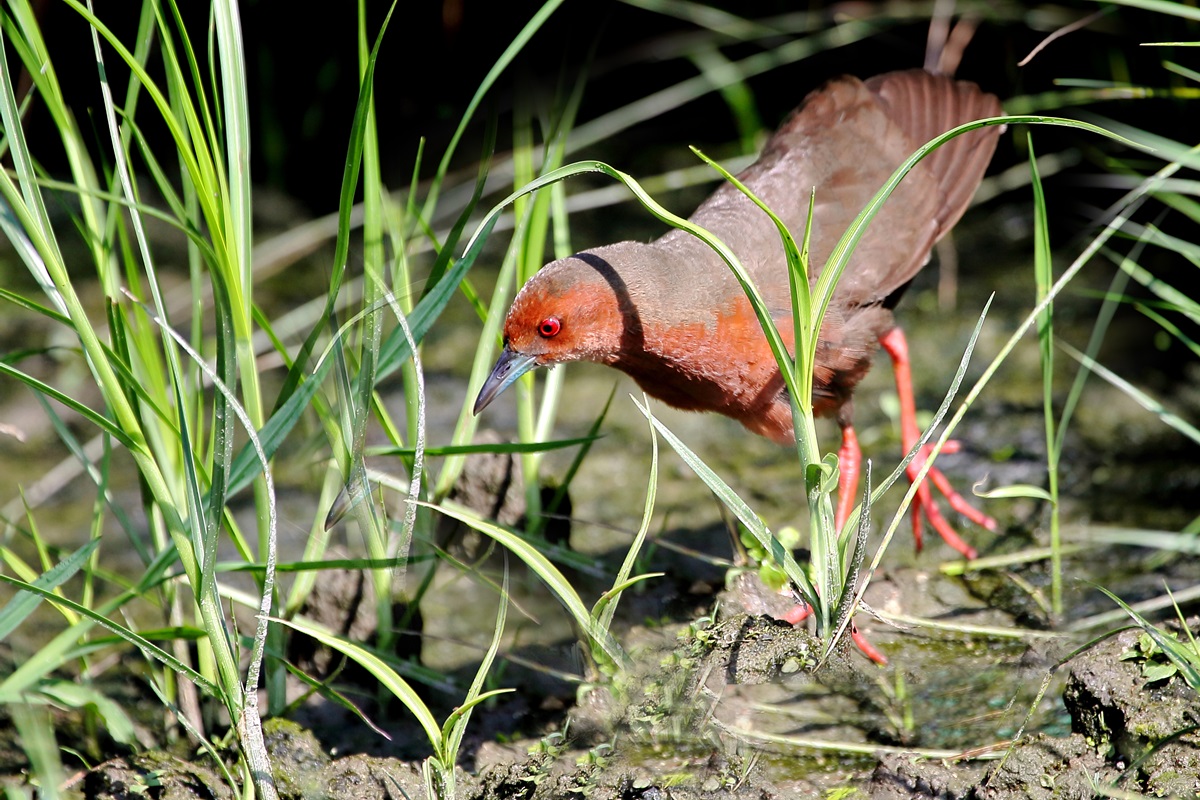 ヒクイナ ( 緋 秧 鶏 ) Porzana fusca Ruddy Crake L=38cm W=65cm ( 名前の由来 ) " クイナ " より額・頸・胸・腹が赤褐色であるから。 異名として " あかくひな " べにくひな " 等々。