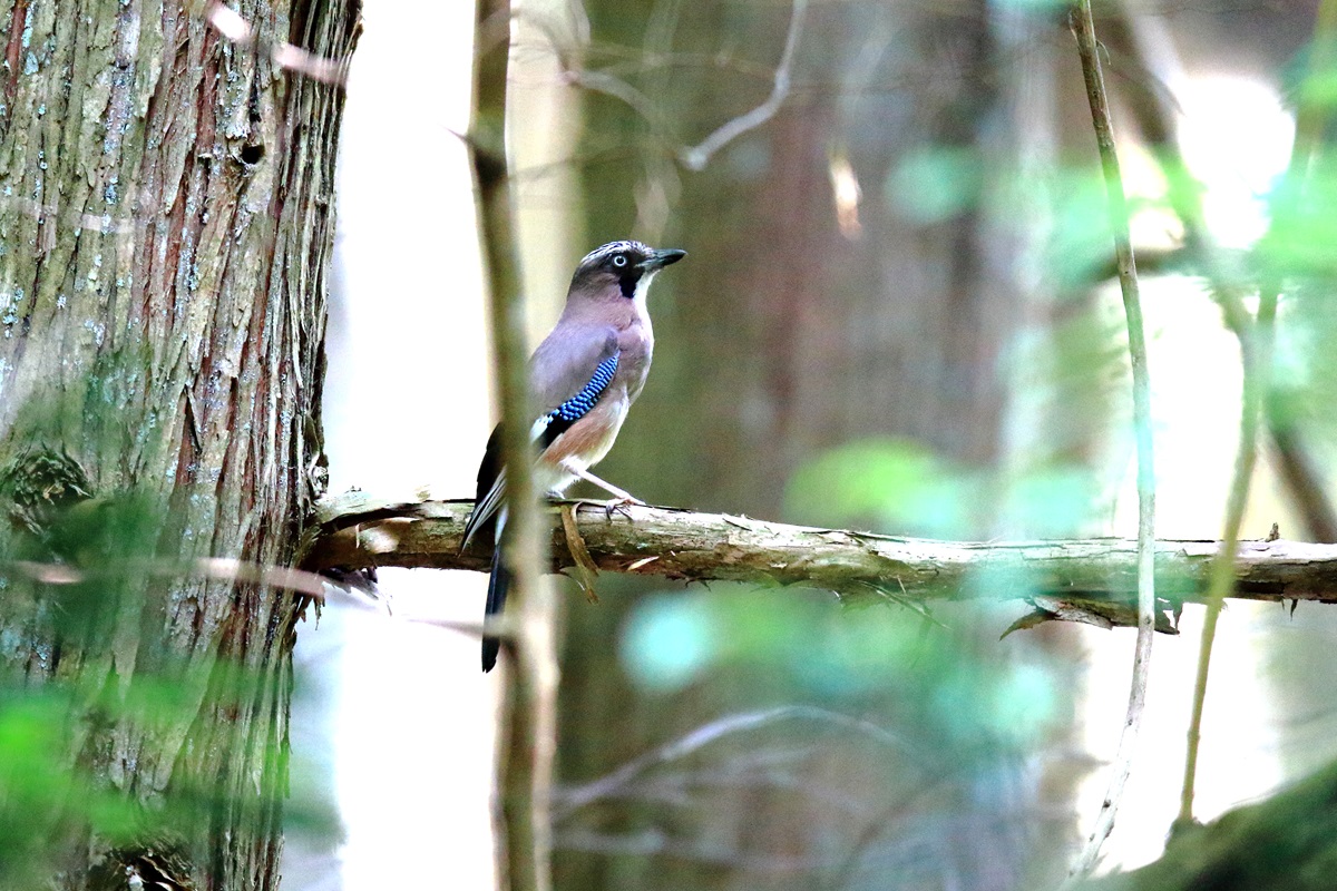 カケス ( 懸 巣 ) Garrulus glandarius Jay L=33cm W=50cm ( 名前の由来 ) 大言海は 「 巣を樹の枝に懸けて垂るといふ 」 と述べている、 カシの実を好むから平安時代より " かしどり " で知られている。