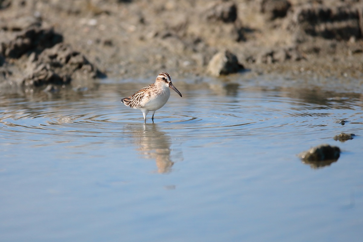 キリアイ ( 錐 合 ) Limicola falcinellus Broad-billed Sandpipper L=17cm W=35cm ( 名前の由来 ) 長く尖ったクチバシが錐を合わせたようであるから、 異名として " しほすき " こざる " ・・・等々。