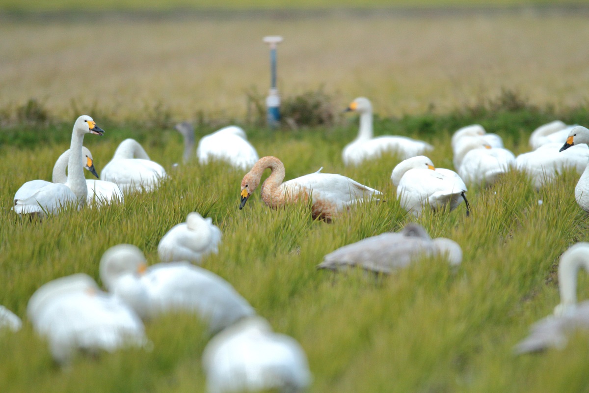 コハクチョウ ( 小白鳥 ・ 小鵠 ) Cygnus columbianus tundra Swan L=120cm W=177cm ( 名前の由来 ) 体色が白くオオハクチョウに似ているが一回り小さいので