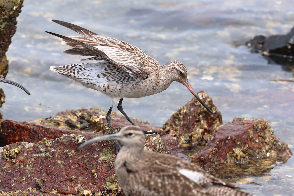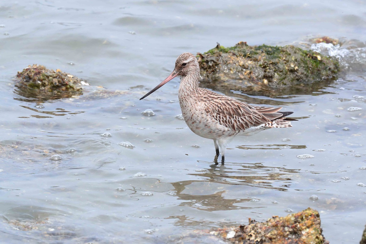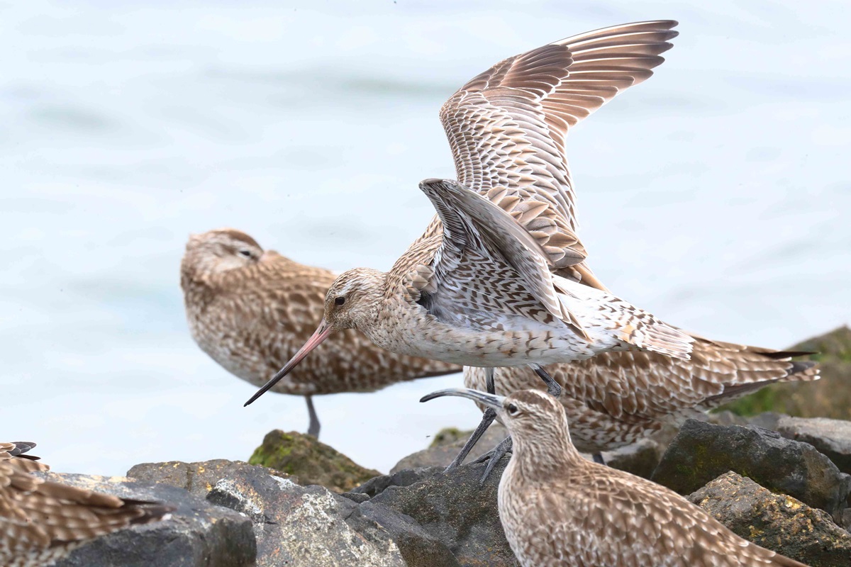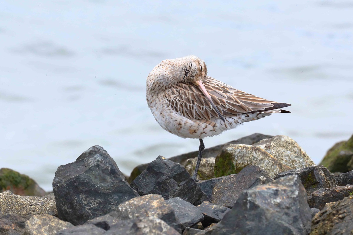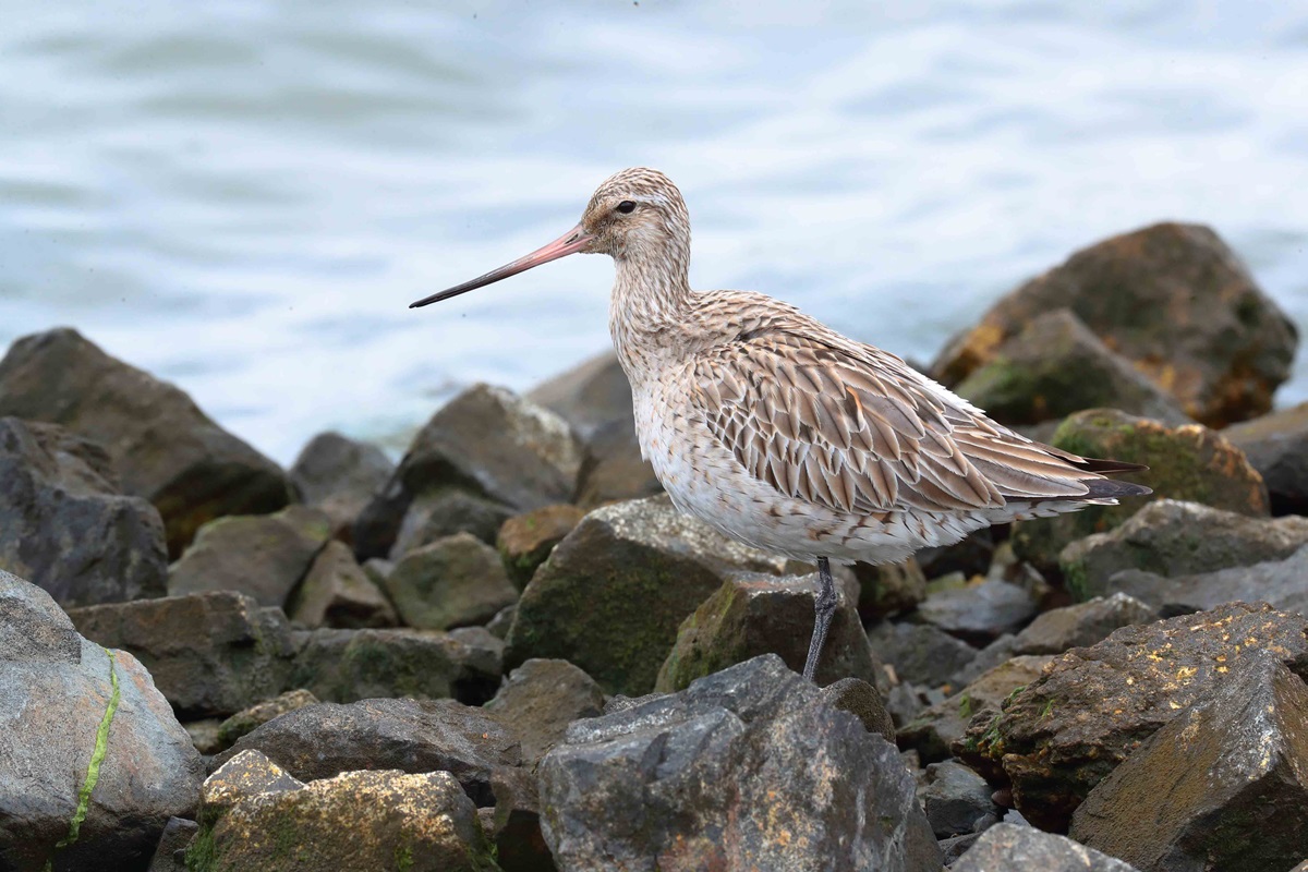 コシジロオオソリハシシギ ( 腰白大反嘴鷸 ) Bar-tailed Godwit Limosa lapponica menzbieri L=41cm W=73cm ( 名前の由来 ) 腰から上尾筒が白いから、 独立種ではなくオオソリハシシギの亜種である。 東シベリアで繁殖し、北西オーストリアで越冬するが日本には稀に少数が飛来。
