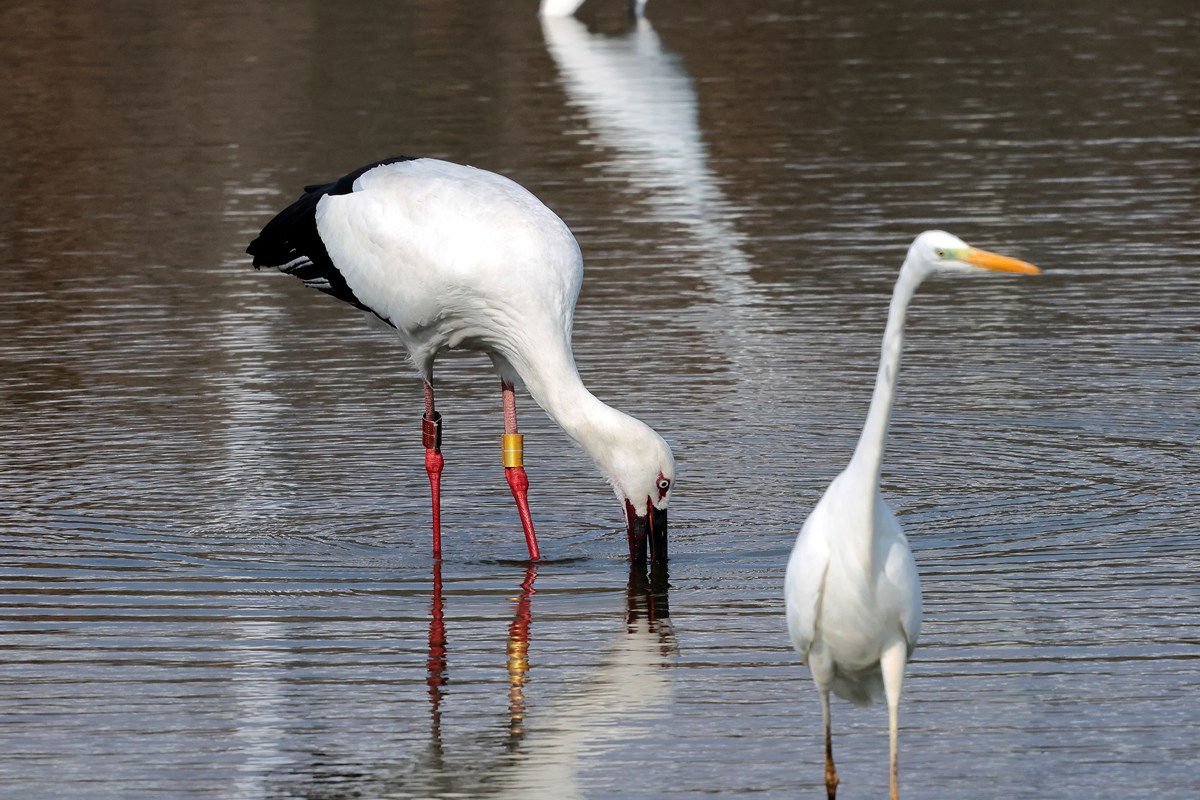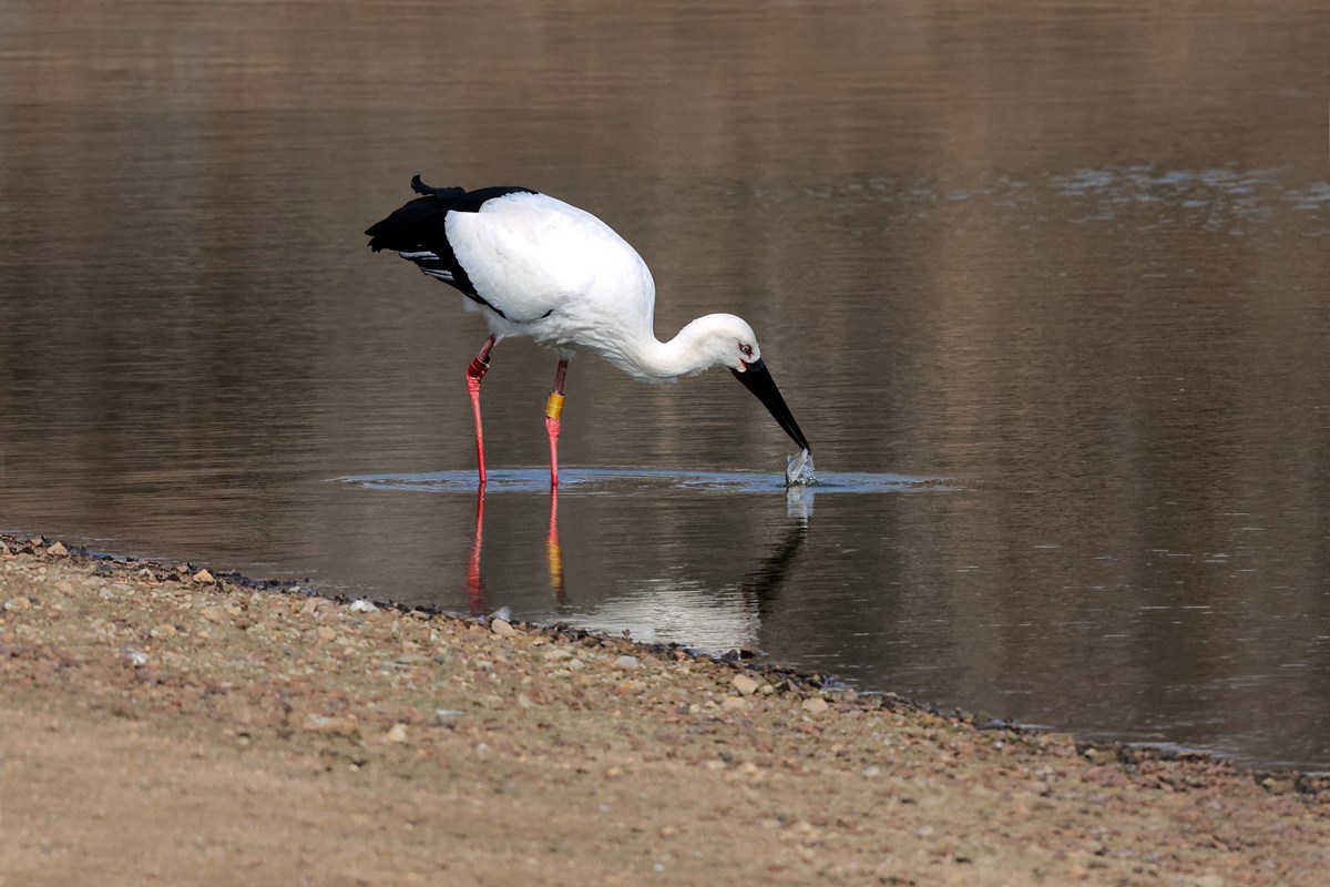コウノトリ ( 鸛 ) Ciconia ciconia White Stork L=112cm W=193cm ( 名前の由来 ) 漢名の鸛( クワン )が鎌倉時代には " かう " と呼ばれるようになり、 江戸時代になって " かうのとり " となった。 古代ドイツ語「Storck」の別の意味は「陰茎」、 それでコウノトリが赤ちゃんを連れてくると信じられていた。 野生個体を見れるのは珍しい、 2006年04月 広島県「灰塚ダム湖」にて。
