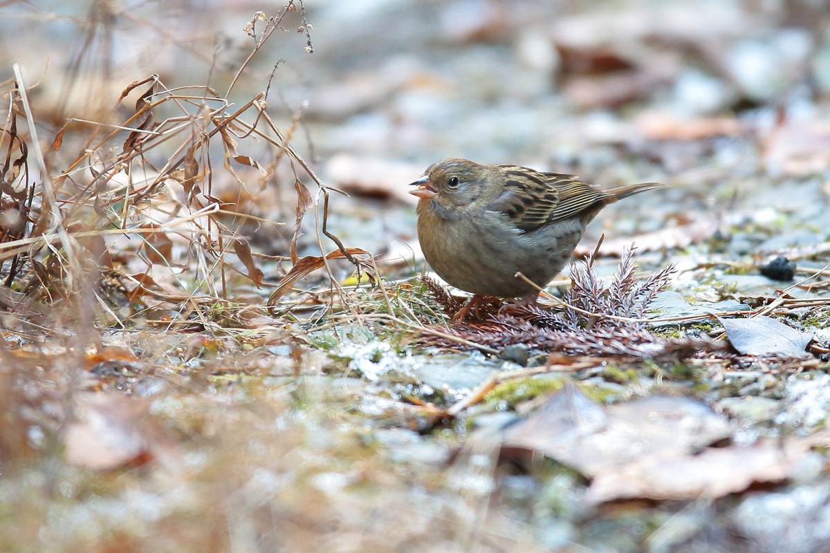 クロジ ( 黒 鵐 ) Emberiza variabilis Grey Bunting L=17cm W=26cm ( 名前の由来 ) " くろじ " の名は " くろしとと " の略で、 " くろしとと " は黒色の " しとと " " しとと "とは「ホオジロ」・「アオジ」の類の古名である。