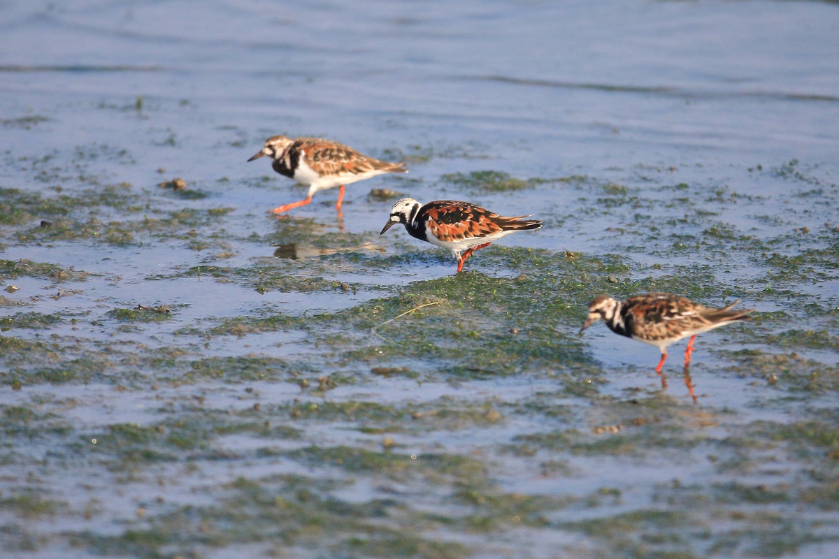 キョウジョシギ ( 京女鷸 ) Arenaria interpres Turnstone L=22cm W=47cm ( 名前の由来 ) 華やかな夏羽を艶やかな「 京女 」にたとえた、 異名として " はるちどり " いとめしぎ " さしはかも " ・・・等々。