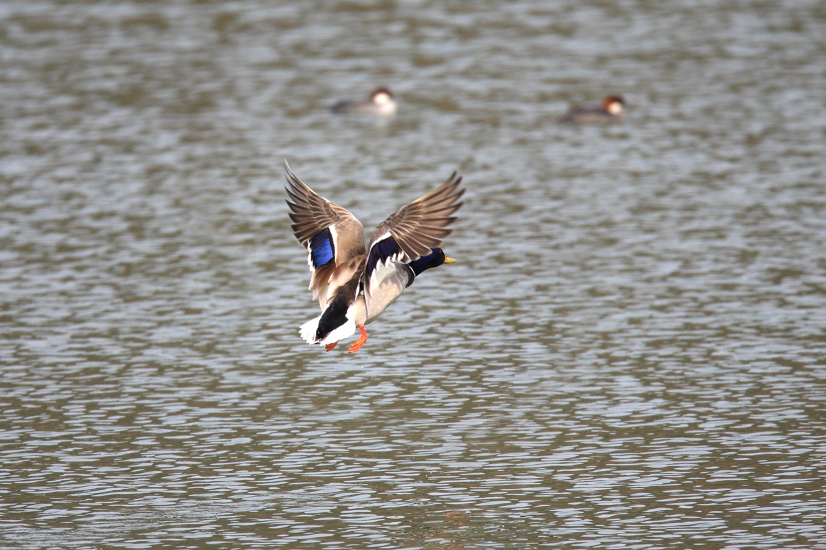 マガモ ( 真 鴨 ) Anas platyrhyncos Mallard L=♂61cm ♀53cm W=85〜99cm ( 名前の由来 ) 食用として古来から狩猟がおこなわれてきた、 各種カモ肉の中でも本種の肉は質、量ともに最高位とされ これは真の鴨であると絶賛。 奈良時代から " かも " あしかも " と呼ばれ、 鎌倉時代から " みかも " と呼ばれて来たが 室町時代からは " あをくび " あをはとり " ともなり、 江戸時代前期に " まがも " の名が与えられ現在に至る。