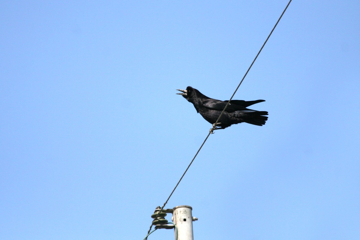 ミヤマガラス ( 深山鴉 ) Corvus frugilegus Rook L=47cm W=90cm ( 名前の由来 ) 深山には「山奥」のほかに「遠く離れた」という意味もある 昔は少数が渡来する珍しい冬鳥だったから 別名 旅ガラスとも
