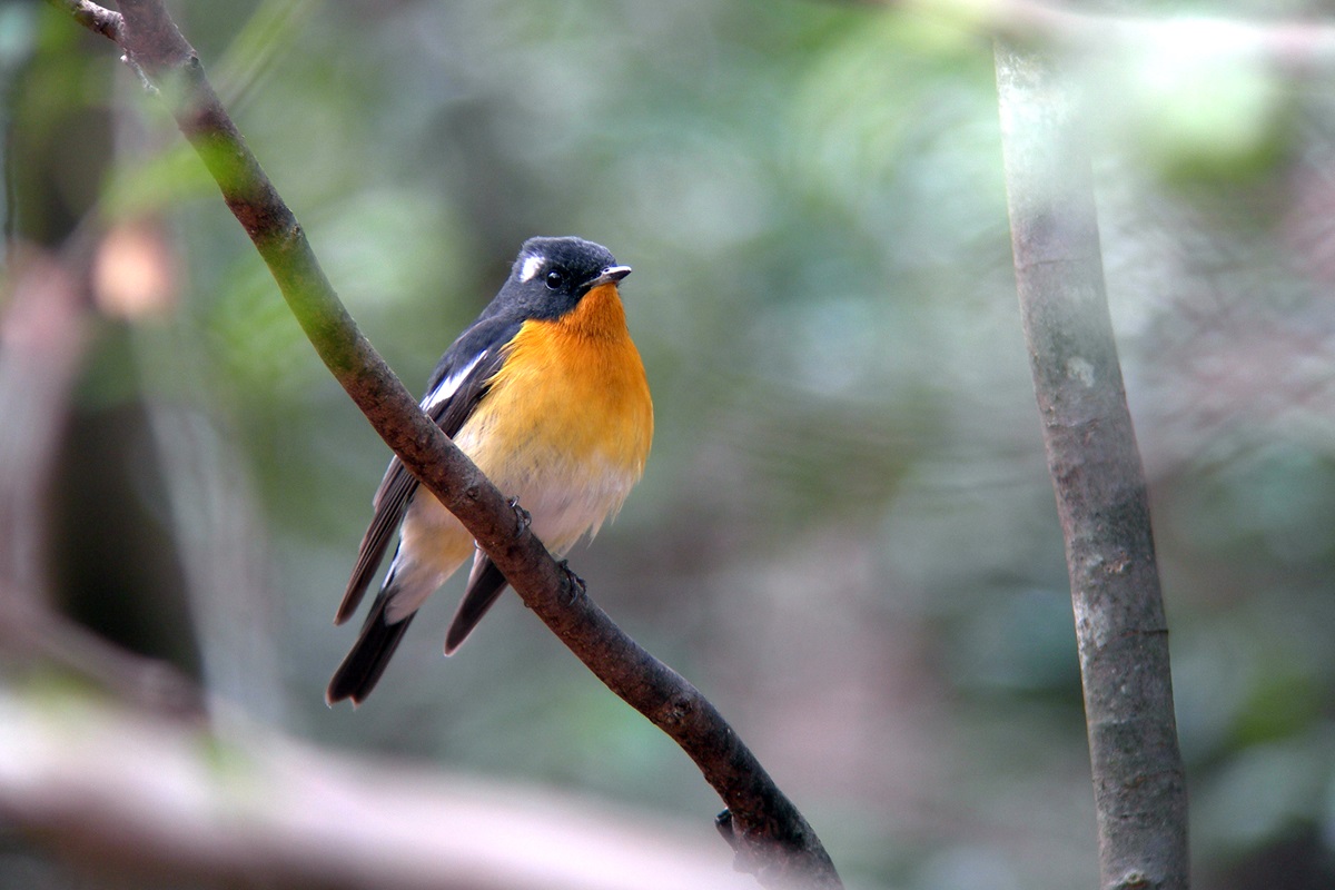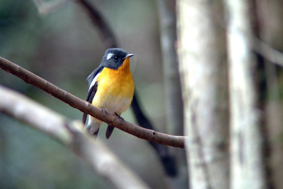 ムギマキ ( 麦 播 ・ 麦蒔 ) Ficedula mugimaki Mugimaki Flycatcher L=11cm W=21cm ( 名前の由来 ) 秋の渡りが麦播きの時期で、そう名付けられた または秋に来て麦蒔きの時期を教えてくれるから 江戸時代中期から " こつばめ " とも呼ばれた
