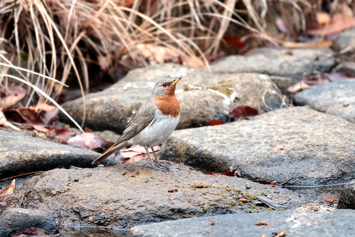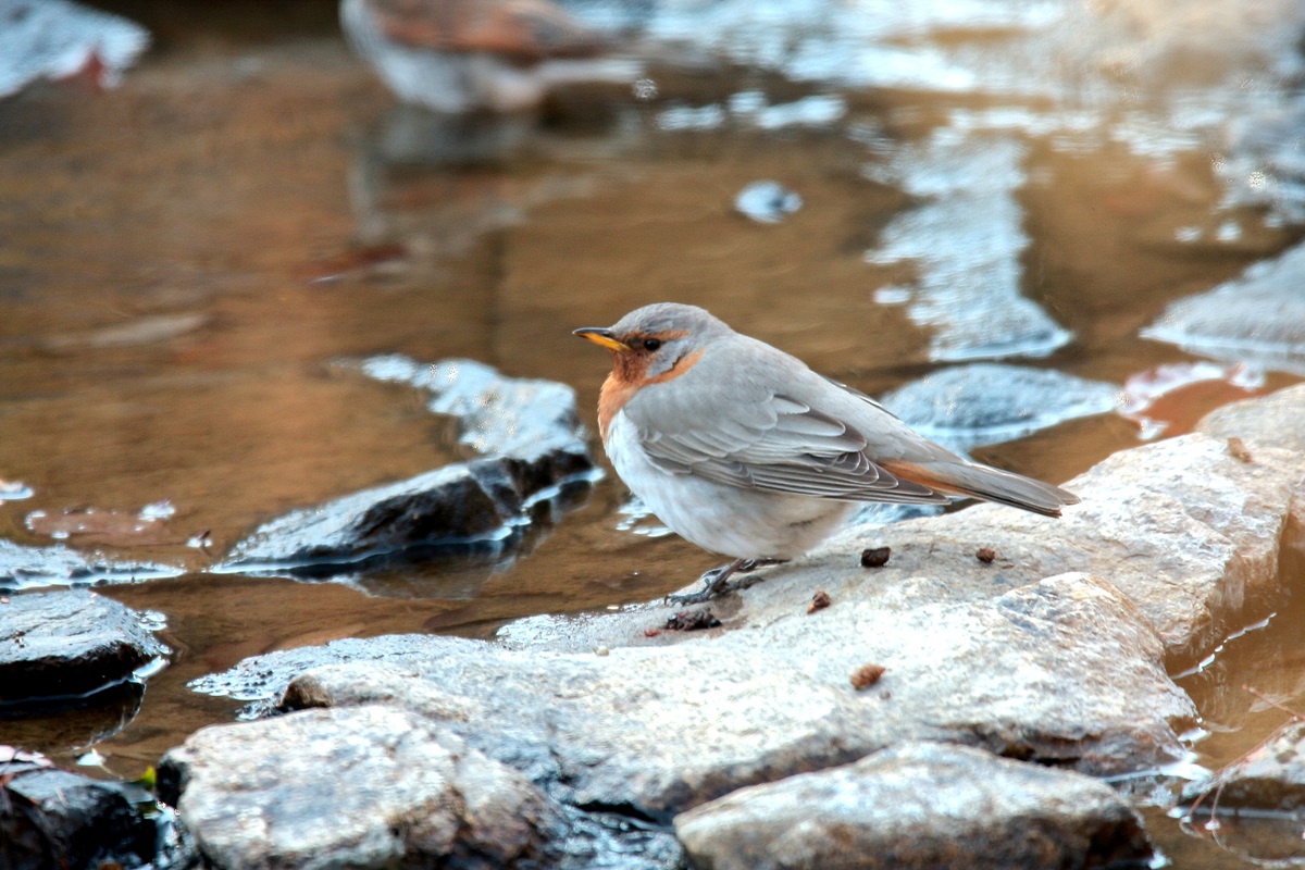 ノドアカツグミ ( 喉赤鶫 ) Turdus ruficollis Red-throated Thrush L=23cm ( 名前の由来 ) 名の通り赤茶色の喉の色による。 ノドグロツグミの亜種である。