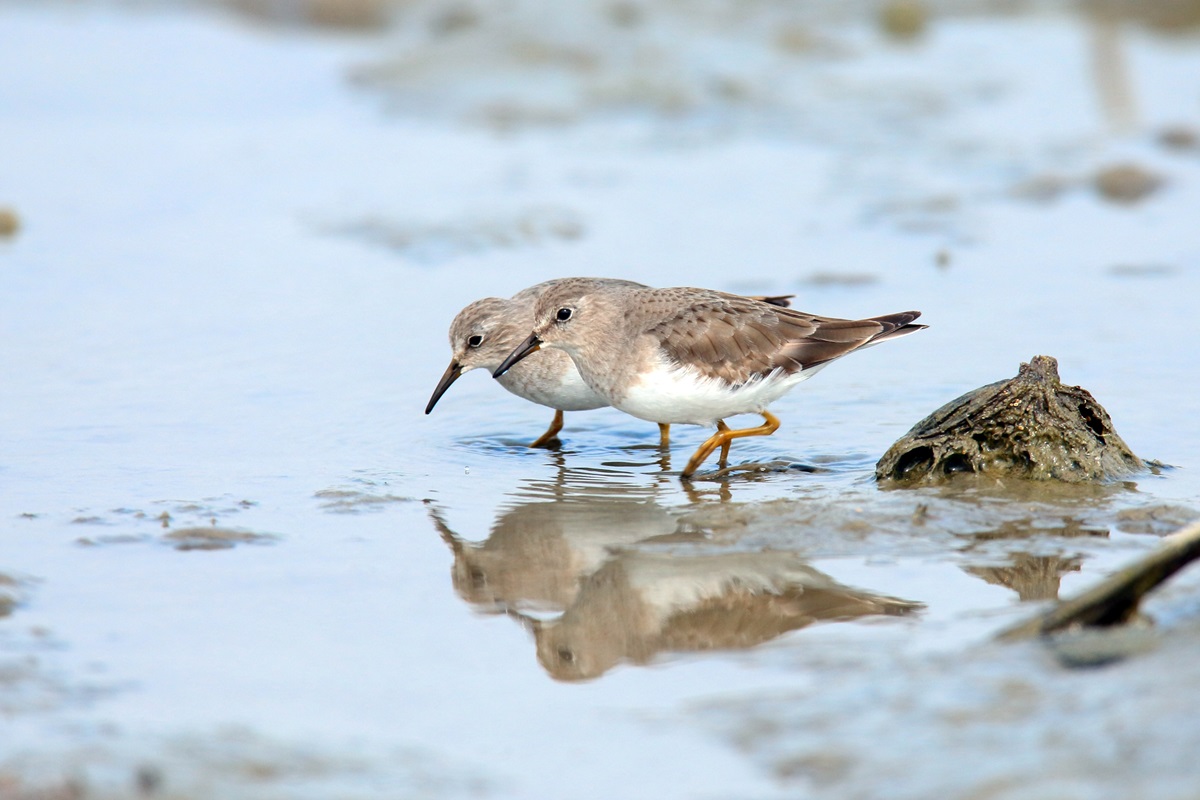 オジロトウネン ( 尾白当年 ) Calidris temminckii Temminck's Stint L=14cm W=35cm ( 名前の由来 ) 外側尾羽は白く、 小さくその年に産まれた子の意味でつけられた当年子。