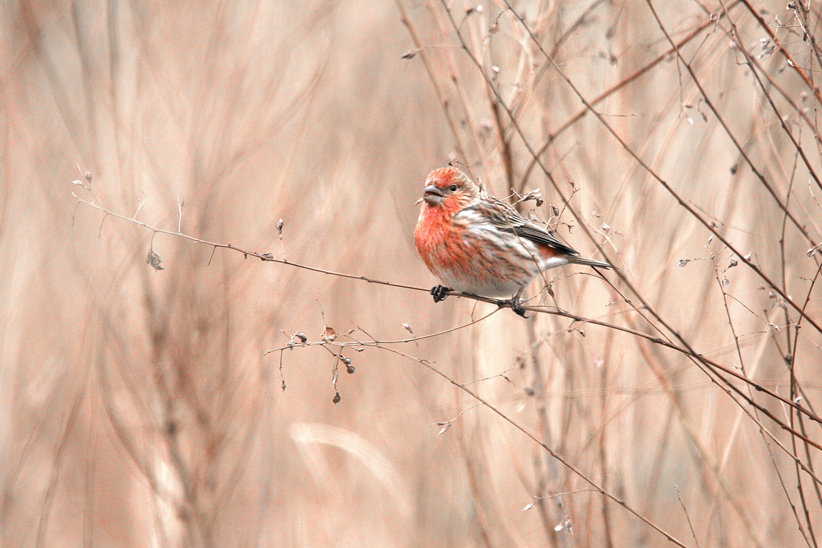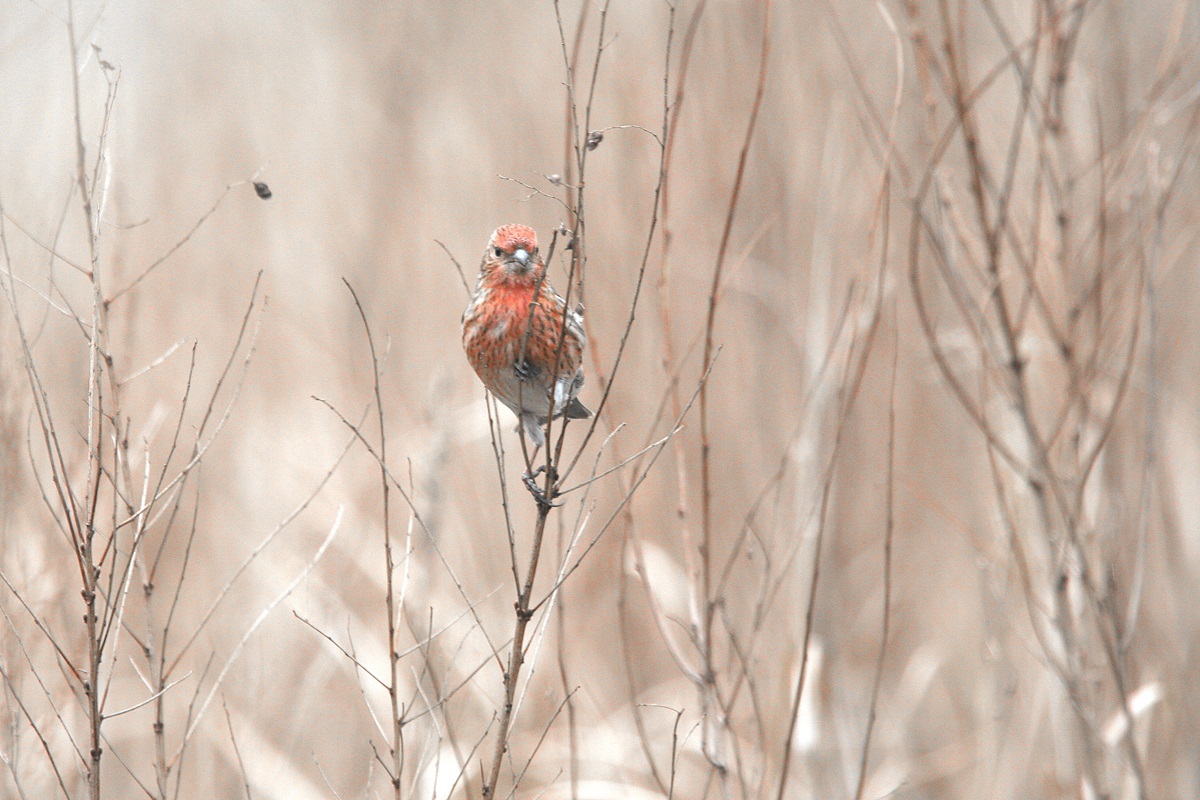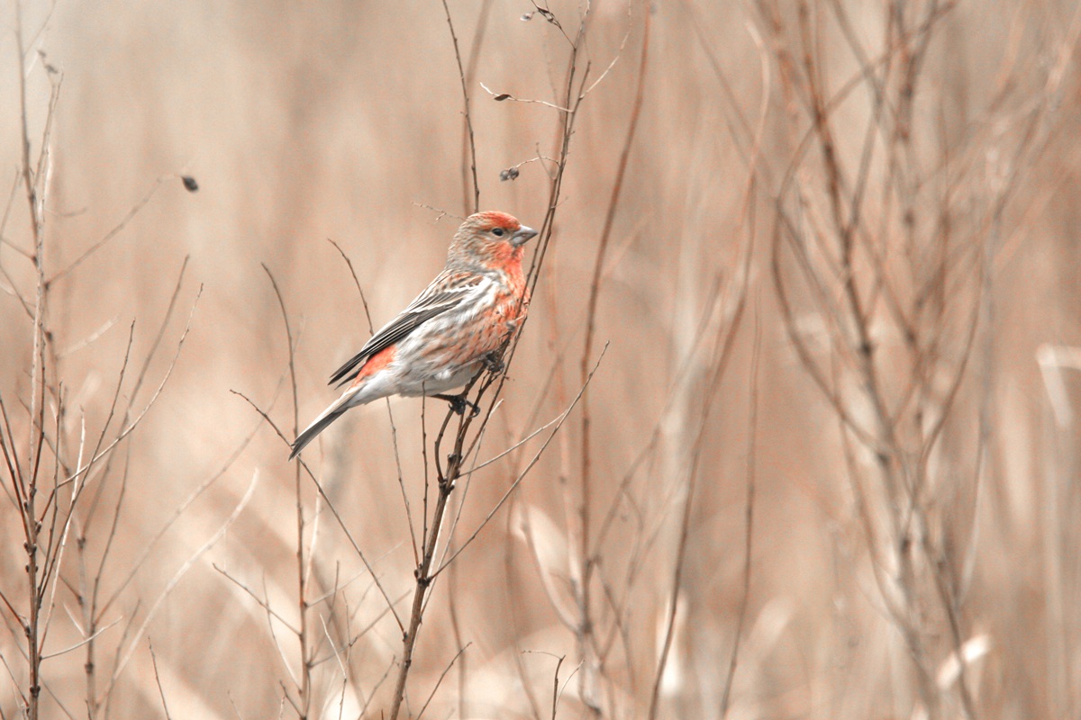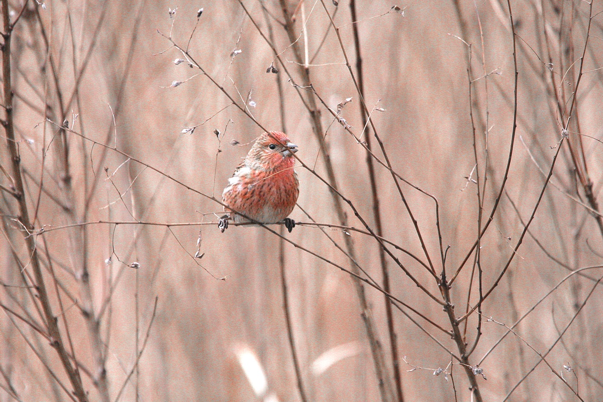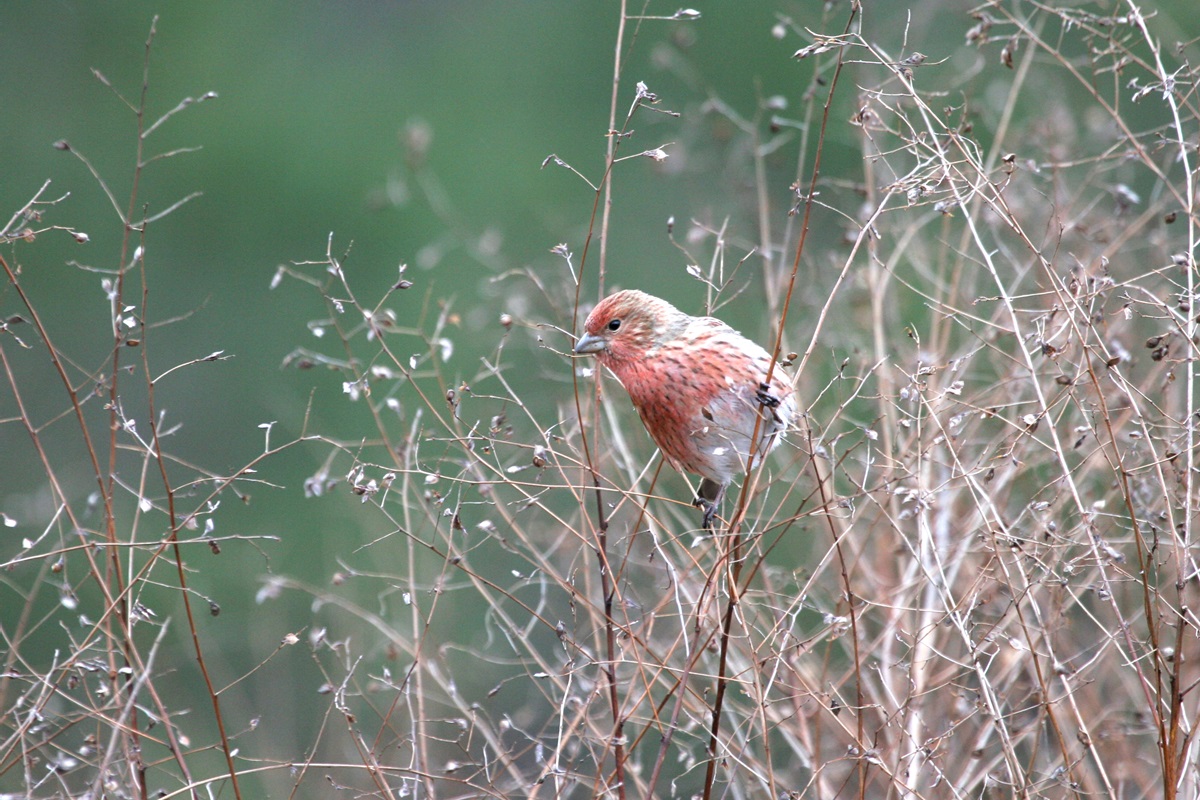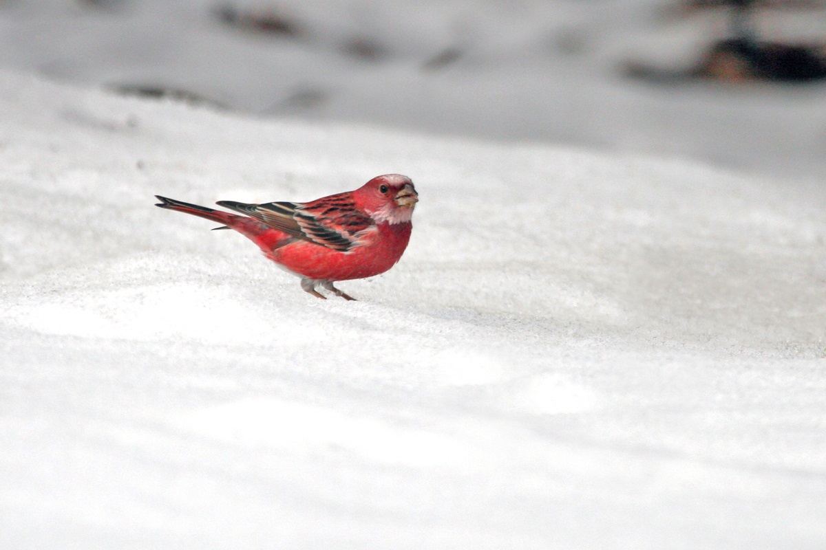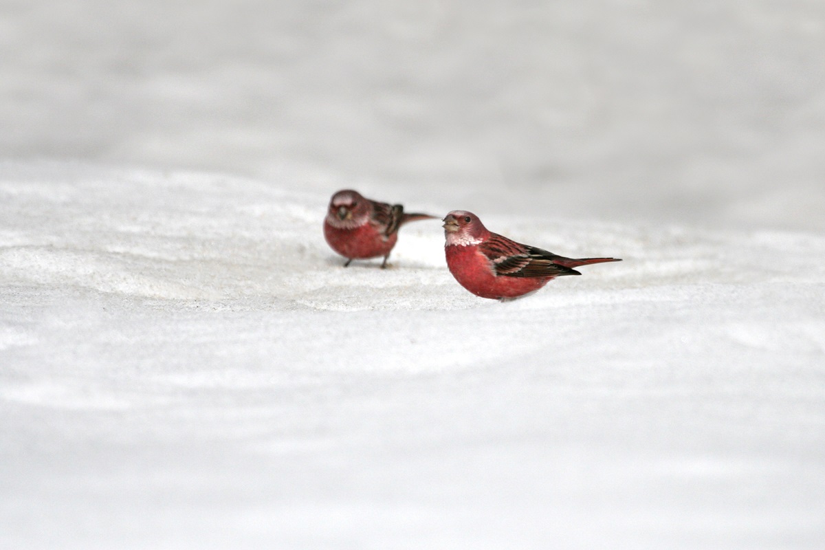 オオマシコ ( 大猿子 ) Carpodacus roseus Pallas' Rosy Finch L=17cm W=27cm ( 名前の由来 ) " 猿の顔のように赤く " ましこ " 又は " さるましこ " と呼ばれたが、 ベニマシコより大型なのでオオマシコと呼んだ 。