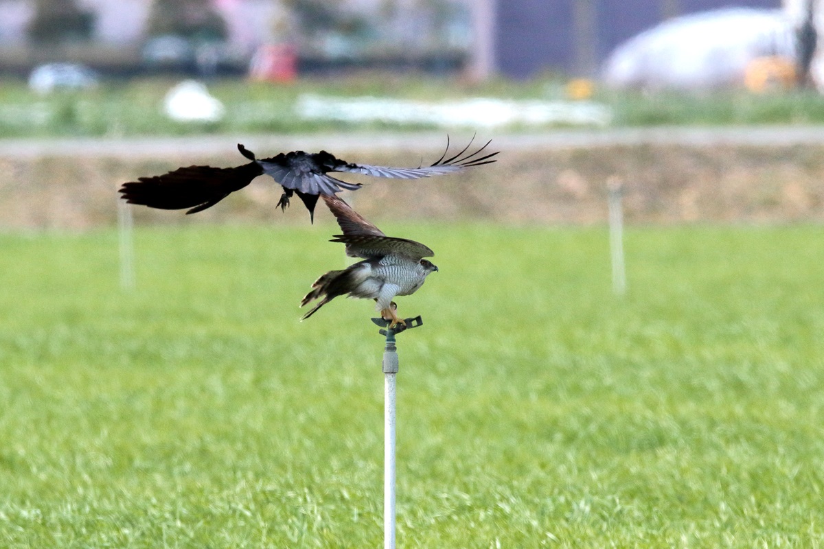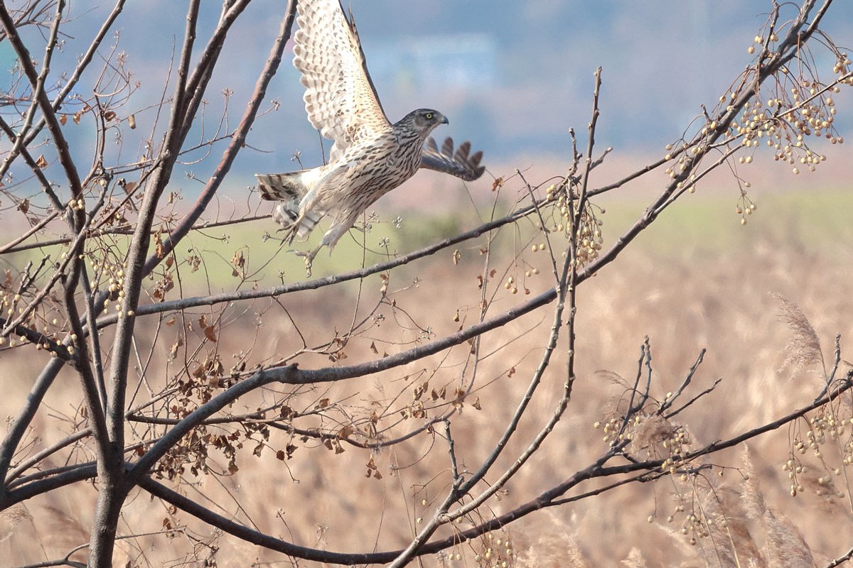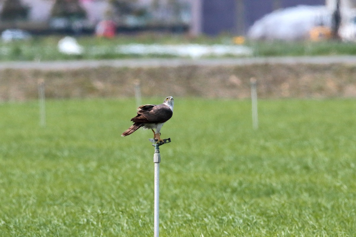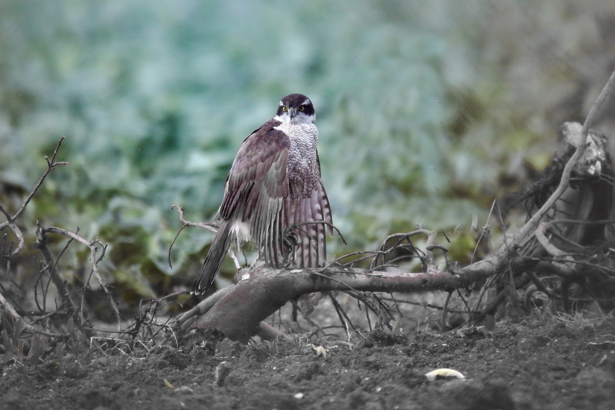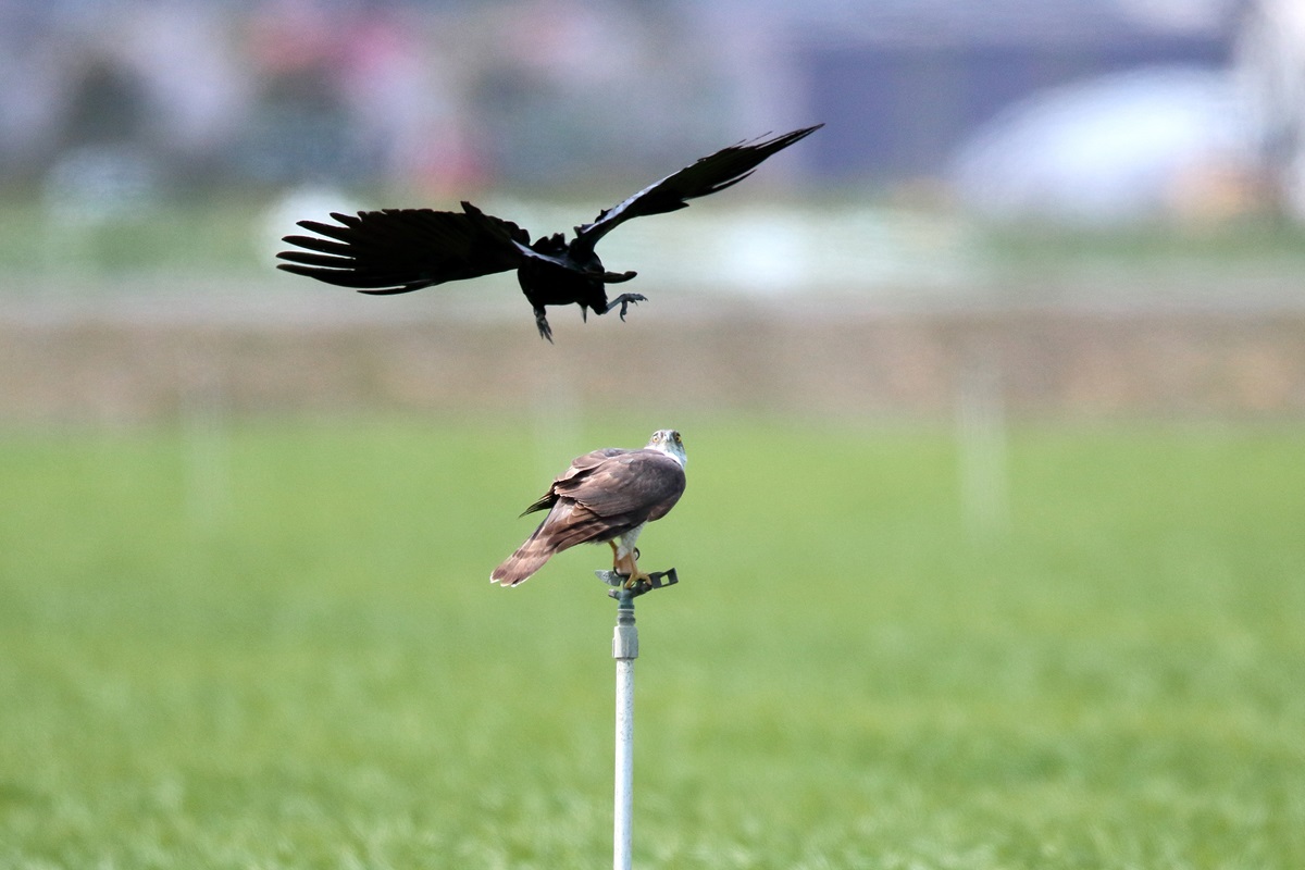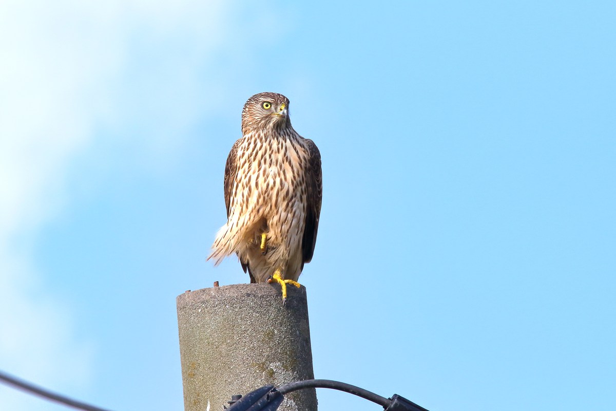 オオタカ ( 蒼 鷹 ) Accipiter gentilis Goshawk L=♂50cm ♀56cm W=106〜131cm ( 名前の由来 ) 成鳥の羽色が主に暗青灰色であるのを、 他のワシ・タカが褐色なのに比べて蒼色としたのであろう。 体が大きく鷹狩りで活躍したメスが「オオタカ」 オスはメスより小さく「勢宇」と呼ばれていた。