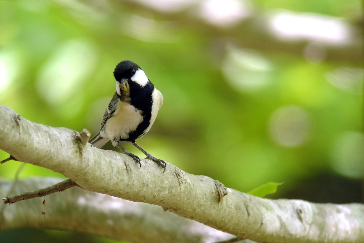 シジュウカラ ( 四十雀 ) Parus major Great Tit L=15cm W=22cm ( 名前の由来 ) " から " は小鳥の総称 、「 しじう 」は鳴き声としている 平安時代から " しじうからめ " の名 室町時代から " しじうから " の名で知られている。