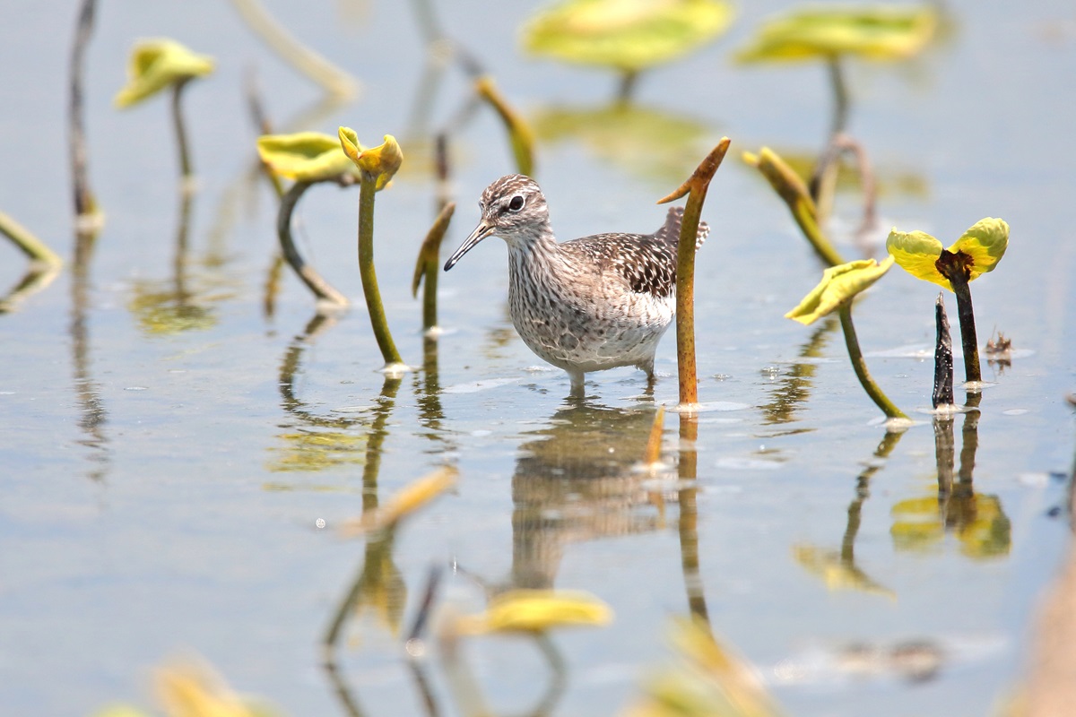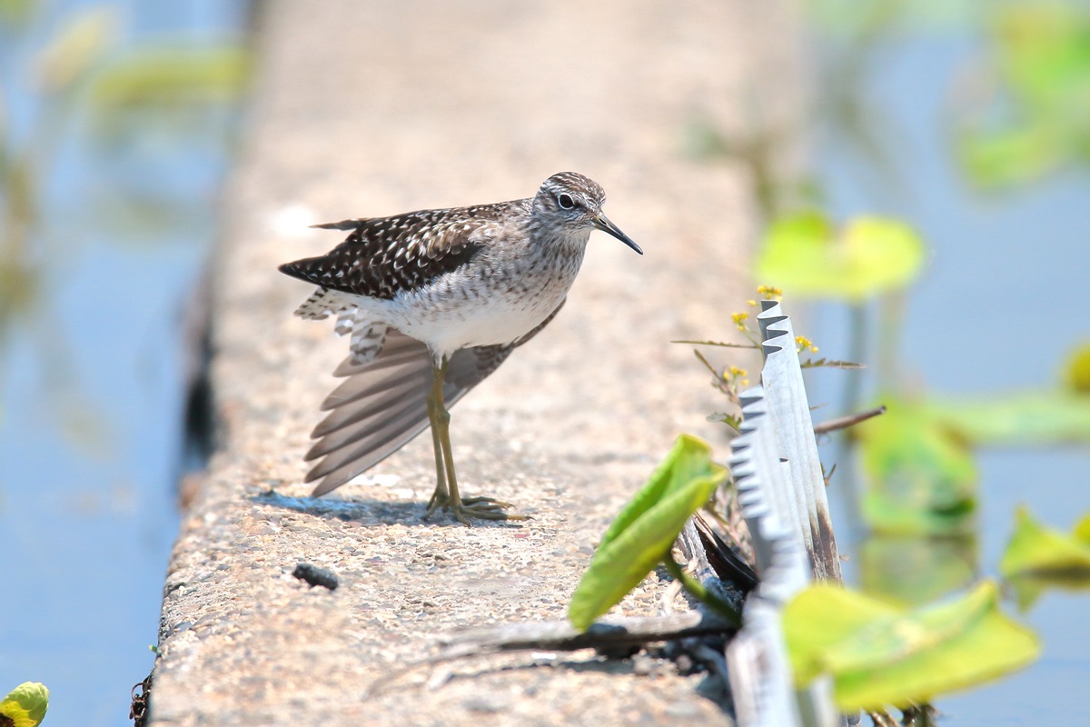 タカブシギ ( 鷹斑鷸 ) Tringa glareola Wood Sandpiper L=22cm W=40cm ( 名前の由来 ) 尾羽に鷹斑があるから。 脚が長く " たかぶ( 高歩 )しぎ " とも。