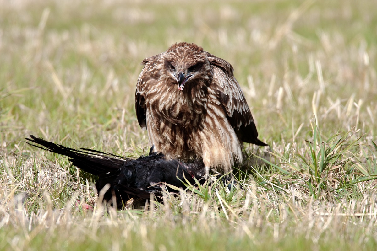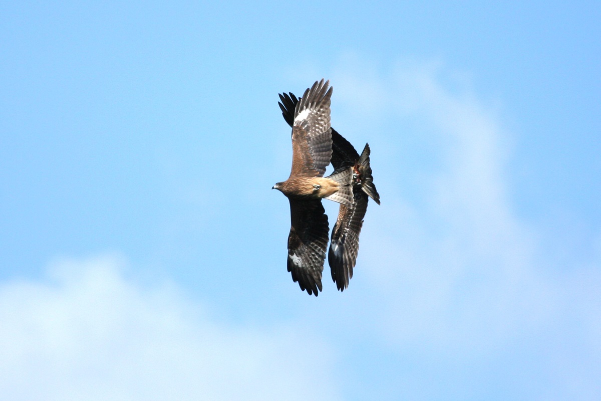 ト ビ ( 鳶 ) Milvus migrans Black Kite 、 Black-eared Kite L=59cm W=69cm ( 名前の由来 ) 遠く高く飛ぶという意味の「とおくひいる」が略され転化して「飛び」になった。