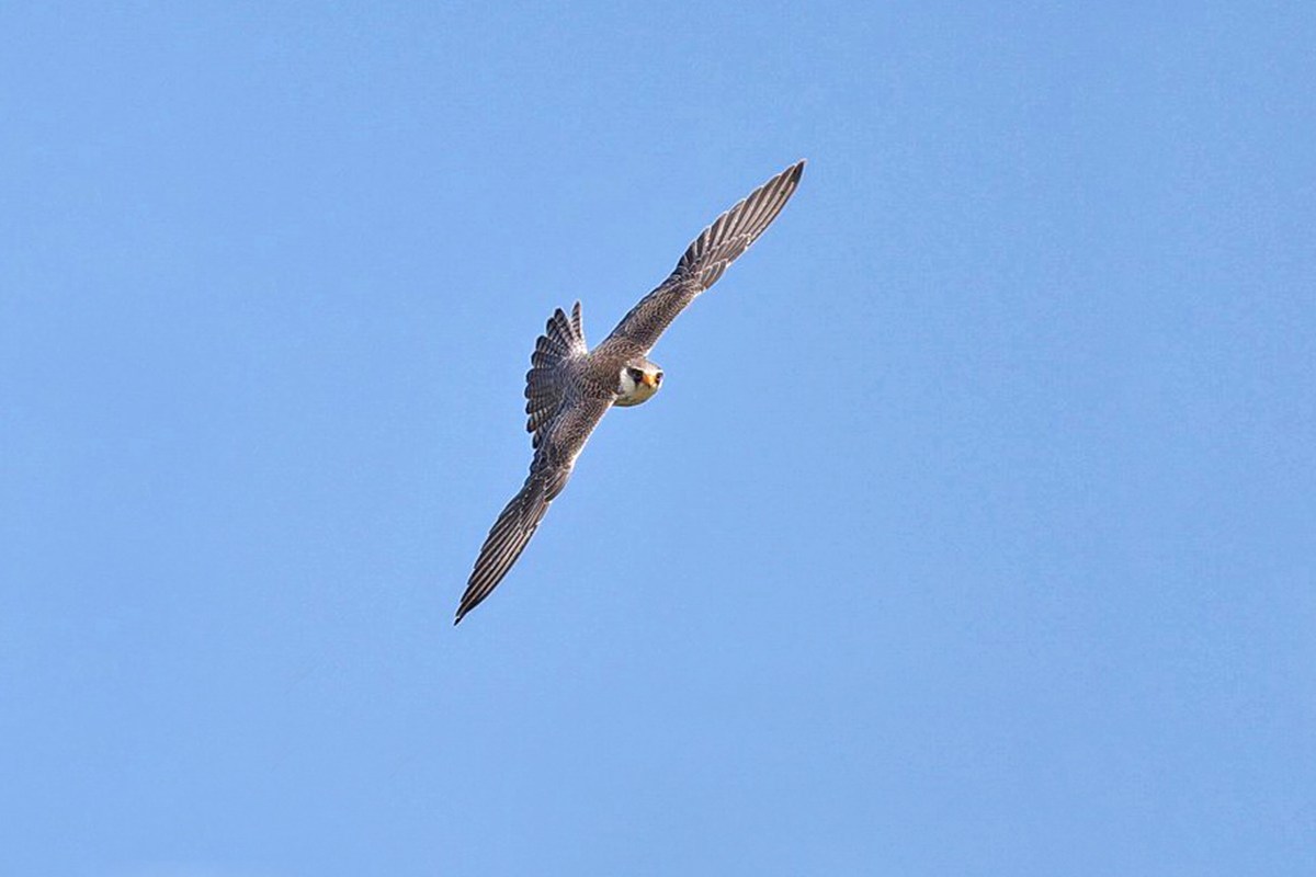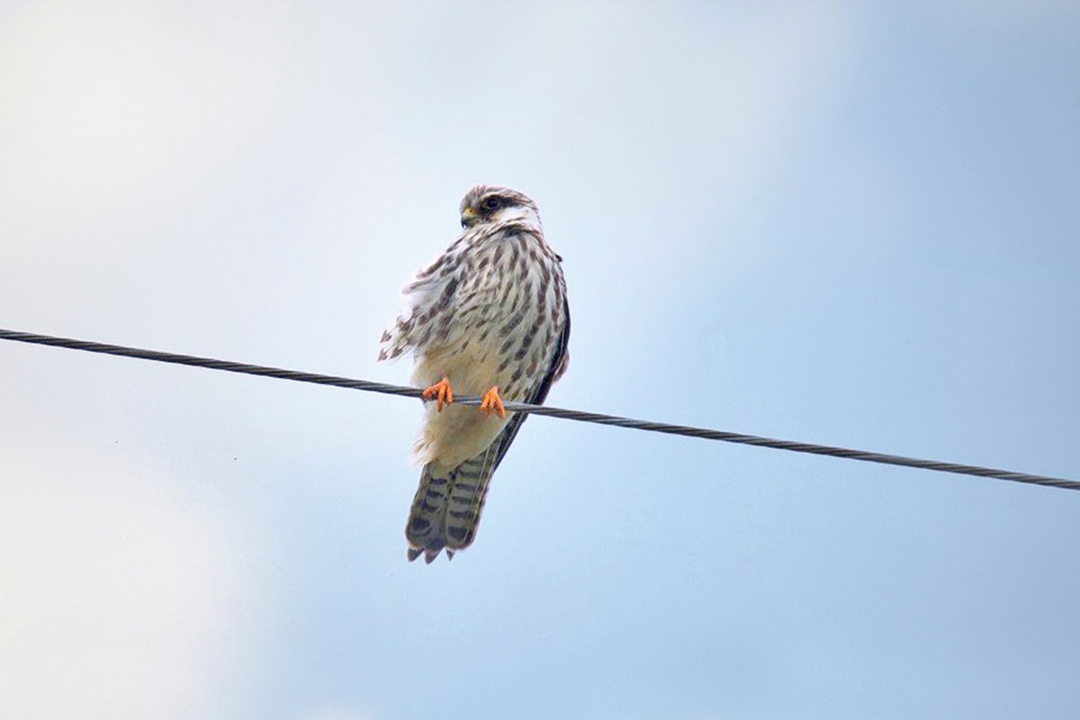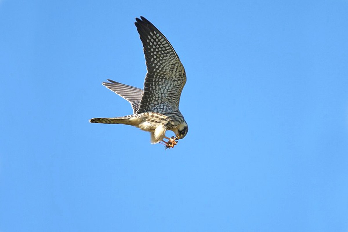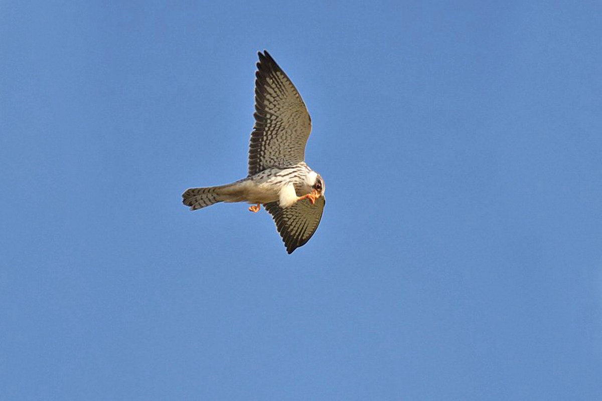 アカアシチョウゲンボウ ( 赤足長元坊 ) Falcon amurensis Red-footed Falcon L=27〜30cm W=70〜72cm ( 名前の由来 ) その名のとおり赤い脚による、 晩秋('07-11)の干拓地に突然現れ多くのバーダーにサービス。 '11-10中旬に4個体の幼鳥が飛来、 大フィーバーとなる。