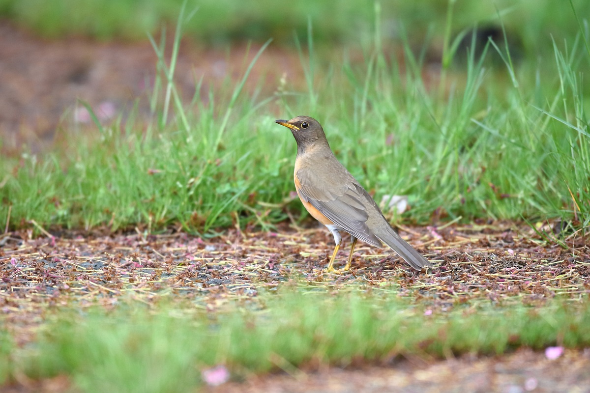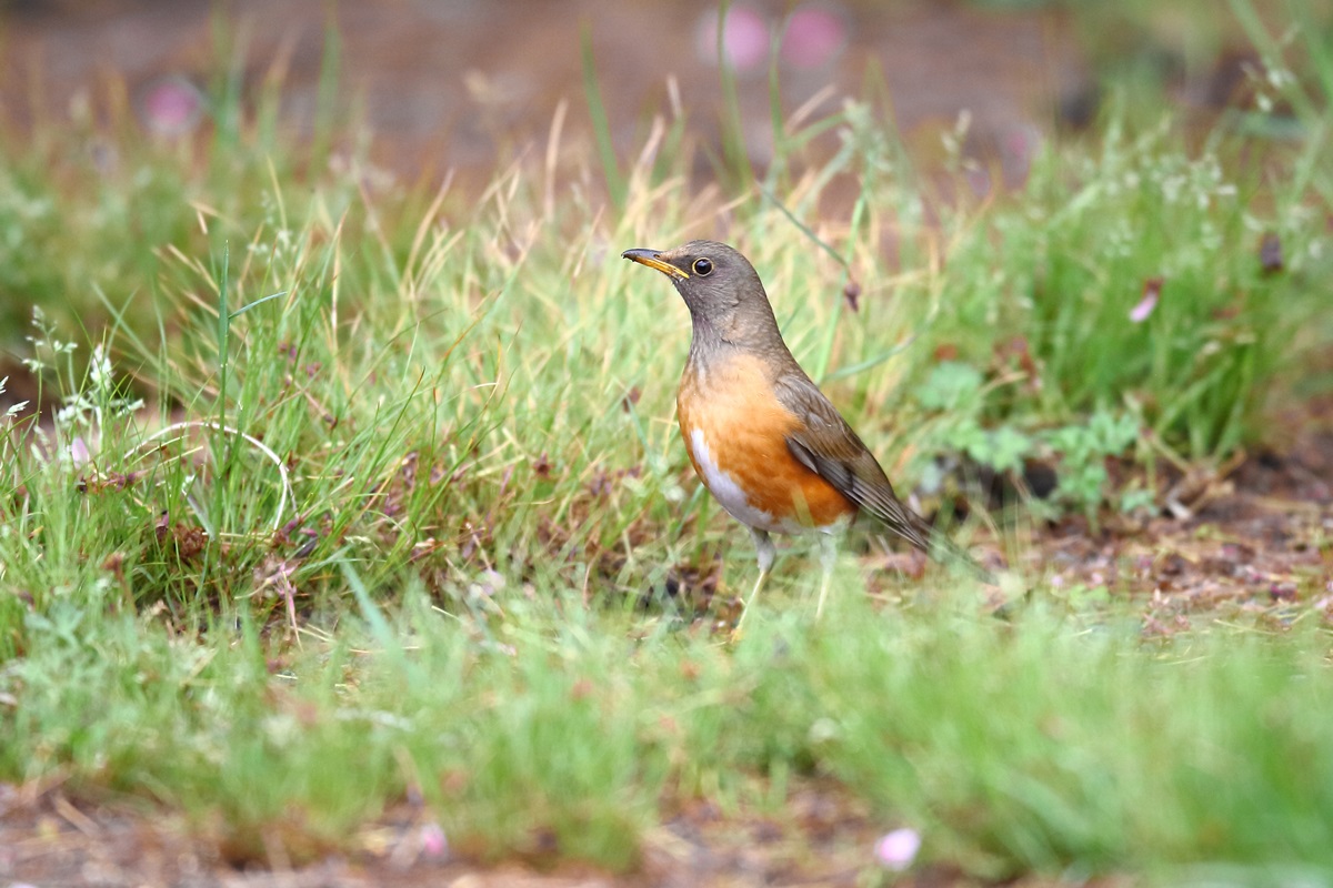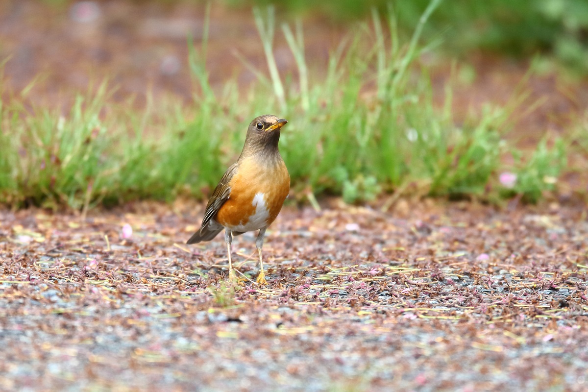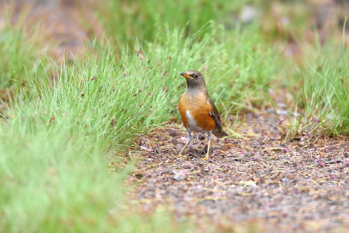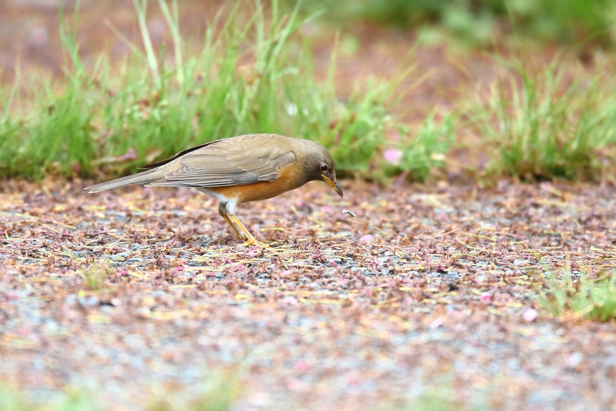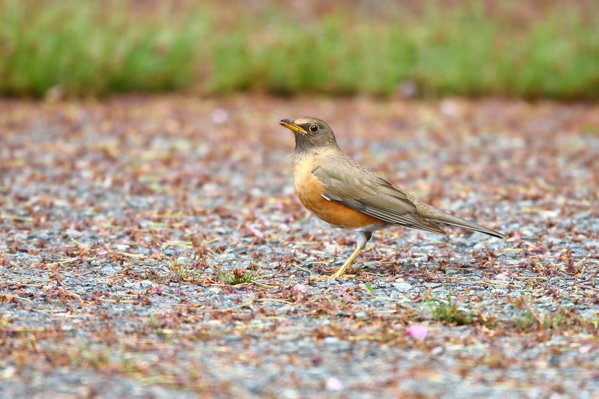 アカハラ ( 赤 腹 ) Turdus chrysolaus Brown Thrush L=24cm W=37cm ( 名前の由来 ) 胸腹の両脇が赤褐色であるため、 多くの異名がある、 あかじなひ ・ あかじなへ ・ あかはらしなひ ・ ちゃじない ・・・ 等々。