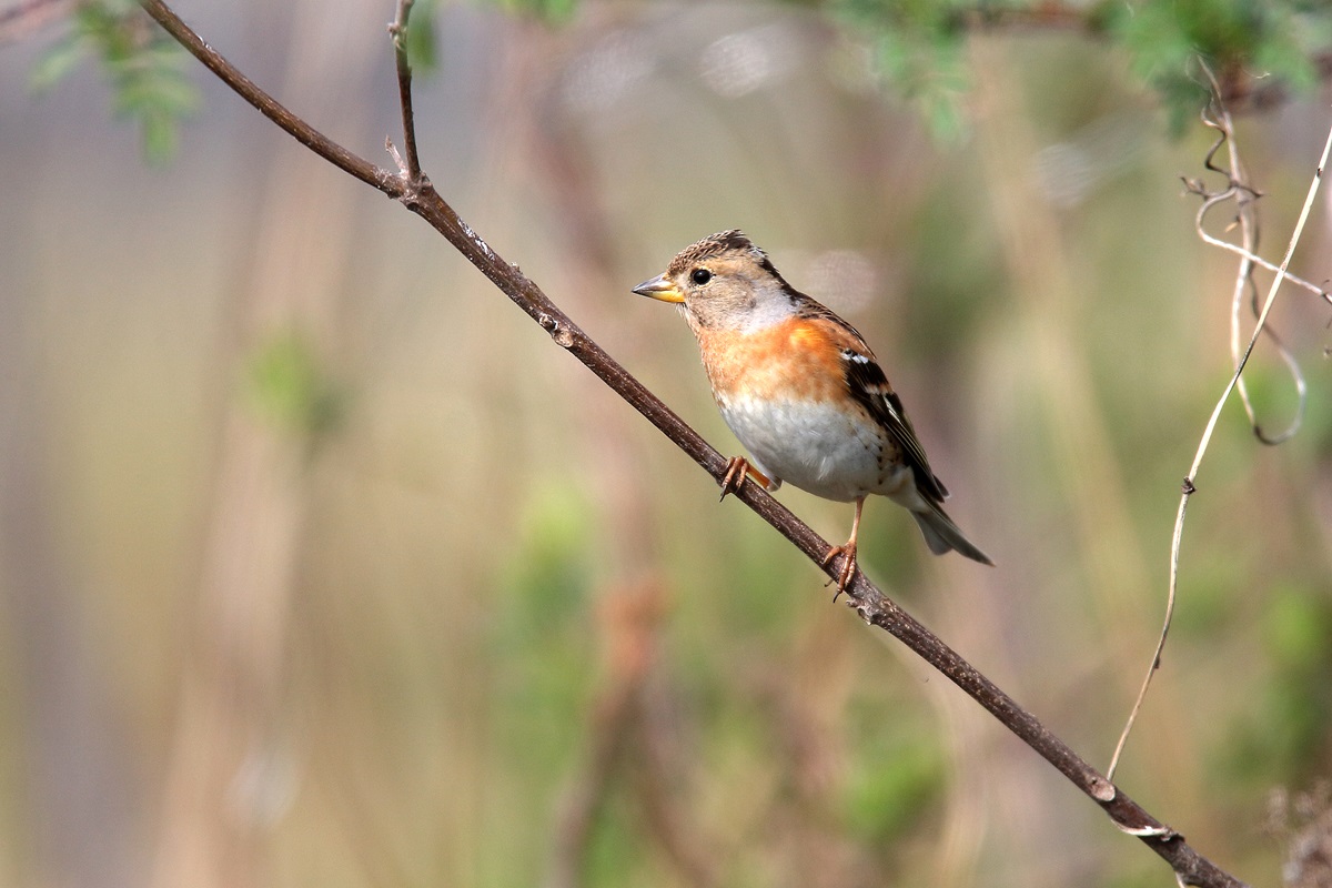 アトリ ( 花 鶏 ・ 集 鳥 ) Fringilla montifringilla Brambling L=16cm W=22cm ( 名前の由来 ) 多く 「 集まる鳥 」 からアトリと呼ばれるようになり、 室町・安土桃山時代になると " あっとり " と呼ばれるようになった。